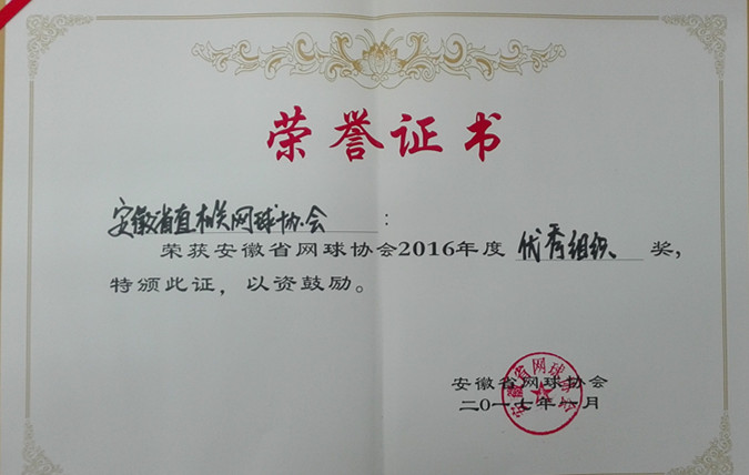 2016年省直机关体育联合会网球协会在省直机关积极推广网球运动,倡导科学健身,成功举办了省直机关第五届网球比赛,扩大了省直机关网球运动的影响力。省直网协还积极组织干部职工参加省第四届全民健身大会,并取得了优异成绩,获得了5个一等奖,5个二等奖。省直网球协会由于工作积极、成绩突出,荣获省网球协会2016年度优秀组织奖。