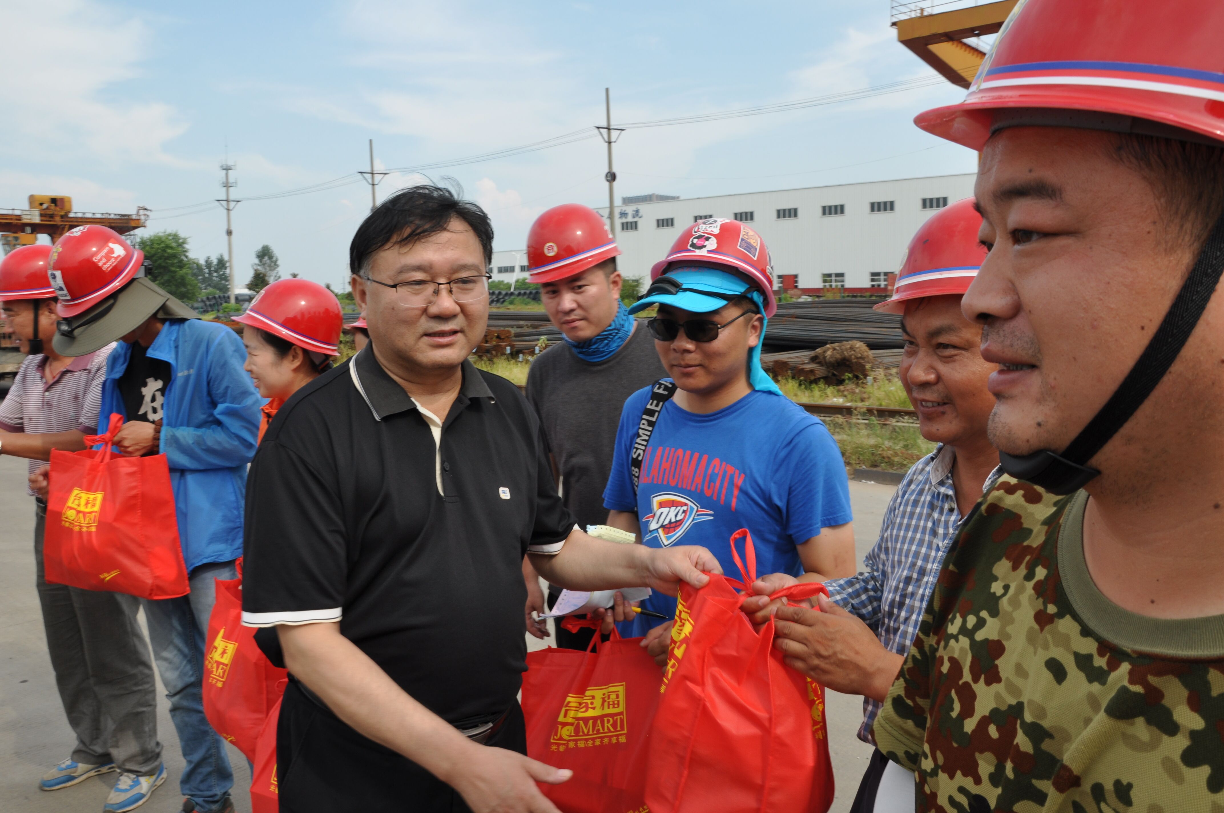 7月27日,省直工委副书记郭德成率领省直工会一行,先后来到安徽盐业房地产开发有限公司施工现场和徽商集团金属物流有限公司露天堆场,为高温露天作业的一线职工送上防暑降温物品,启动了省直机关 “送清凉”活动。