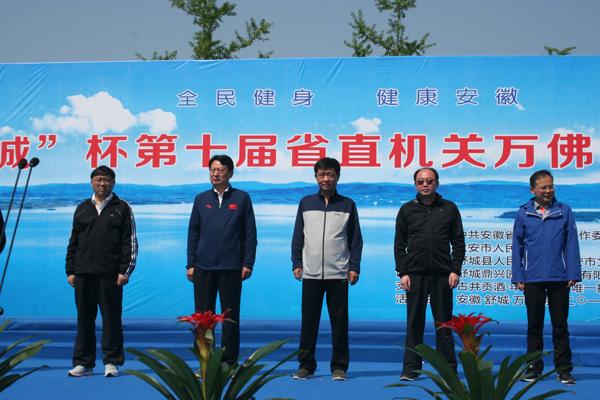 4月15日,风光旖旎、景色迷人的舒城县万佛湖畔,人声鼎沸,红旗招展,省直机关第十届环湖健身走活动在这里如期举行,来自省直机关100个单位的1500多名干部职工兴致勃勃地参加了健身步活动。省委常委、六安市委书记孙云飞出席启动仪式,宣布活动开始,并同省直机关工委书记钱桂仑、省体育局局长高维岭以及六安市、舒城县领导一起为活动鸣枪发令。